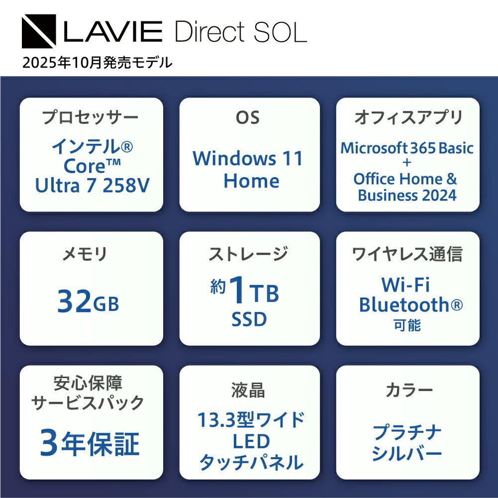- 【ふるさと納税】【新品】 ノートパソコン 2025年10月発売モデル NEC LAVIE Direct SOL① 13.3型ワイド インテル® Core™ Ultra 7 プロセッサー 258V Windows11 HOME 32GB メモリ 1TB SSD Microsoft office プラチナシルバー