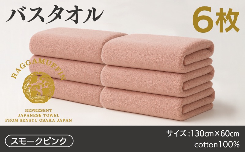 - 099H4132 高級泉州タオル ラガマフィン バスタオル スモークピンク 6枚