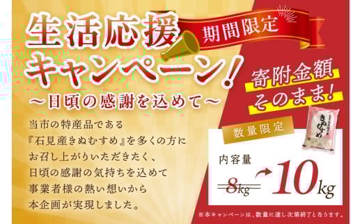 【年内配送】【生活応援品】【令和7年産】石見産「きぬむすめ」(5kg×2袋) 米 お米 きぬむすめ 精米 白米 玄米 ごはん お取り寄せ 特産 【058_1841】