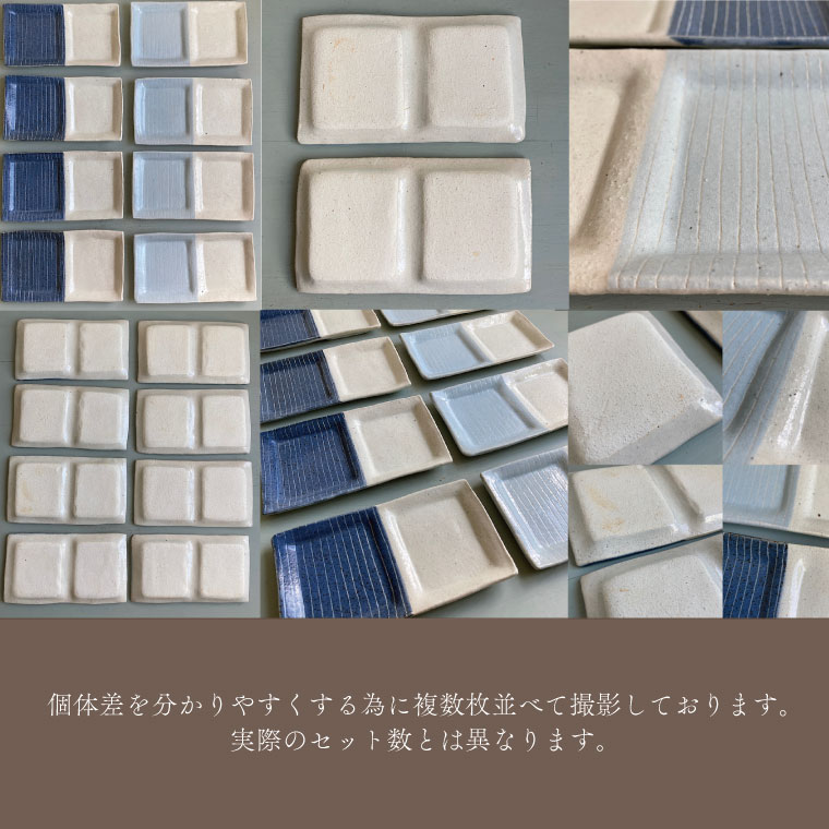 - 【ふるさと納税】デイリー使いに重宝します!益子焼 2連皿2点セット | 2枚セット 組み合わせ おしゃれ 藍色と白 水色と白 インテリア 小皿 とり皿 アクセサリー入れ 食せん機可 レンジ可 (BU010)