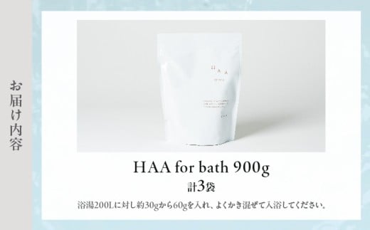 【冷え性にお悩みの方へ】限りなく天然温泉に近い入浴剤「HAA for bath 900g」(3袋)