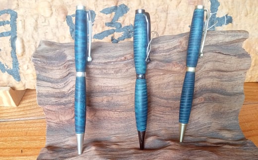 - 【秩父産材使用】藍染の木のボールペン / 手づくり 木製 オリジナル技法 藍染め 栃の木 セラミックス塗装 文具 筆記用具 埼玉県 特産品 No.603