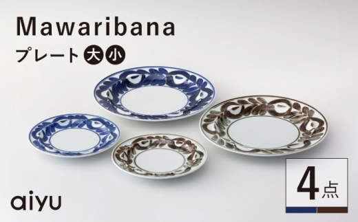 - 【波佐見焼】mawaribana プレート 大小4点セット ブルー×ブラウン【アイユー】 [UA52]