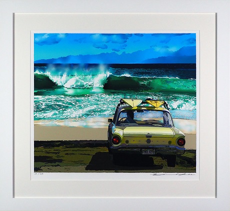- 版画 鈴木英人 「サンディー ビーチ」 シリアルナンバー入り フレーム付き 直筆サイン入り インテリア アート 絵画 絵 イラスト 風景 ワイキキ サンディービーチ