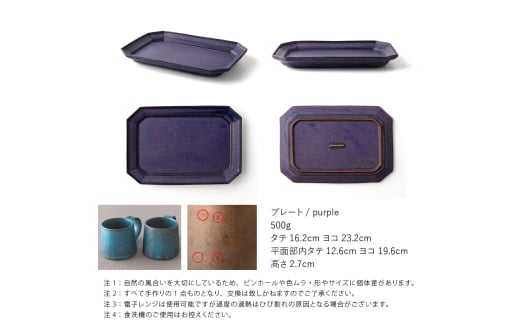 - 【美濃焼】 恩田陽子 隅切長角皿 L パープル 瑞浪市 / JS企画 プレート 皿 長皿 [AZAZ060]