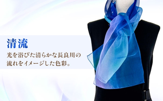 スカーフ 美濃友禅 シルク NAOE KAWAMURA ー清流ー ストール ショール ファッション 雑貨 小物 伝統工芸 アート 芸術作品 インテリア 岐阜県 おすすめ 人気 オーガンジー 染色 グラデーション おしゃれ かわいい 上品 高級感 エレガント フォーマル カジュアル 普段使い サステナブル ハンドメイド ギフト プレゼント 岐阜市 / 河村尚江デザイン事務所 [ANDE004]