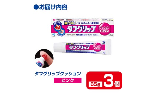 タフグリップクッション ピンク 65g×3個 小林製薬 入れ歯安定剤 入れ歯 義歯 オーラルケア 歯 衛生用品 日用品 口腔ケア 口内清潔 歯の健康【CGC】ta590