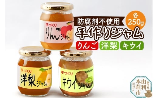 茂木農園 秋田県産 手作りジャムセットC 合計750g(りんご、洋梨、キウイ 各250g)