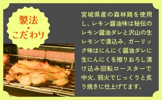 - 森林鶏 炙り焼き 食べ比べ 150g × 4袋 レモン醤油味 ガーリック味 2種 鶏肉 チキン 肉 お肉 骨付き肉 レモン醤油 ガーリック 味付 国産 宮城県 石巻市
