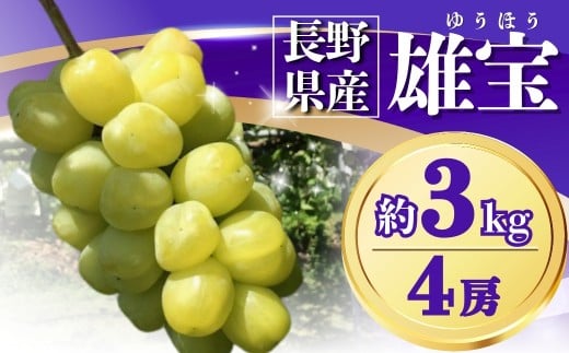 【2026年先行予約】ぶどう 雄宝(ゆうほう) 約3kg(4房)| 果物 フルーツ ぶどう 葡萄 ブドウ 種無し 種なし 皮ごと 千曲市 長野県 信州
