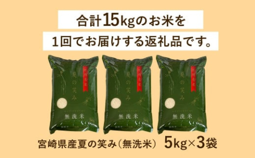 【学校給食提供】<令和7年産 宮崎県産 夏の笑み(無洗米)5kg×3袋 計15kg>お申込みの翌月末までに順次出荷 米 夏の笑み 無洗米 精米 希少 品種 白米 お米 ご飯 宮崎県産