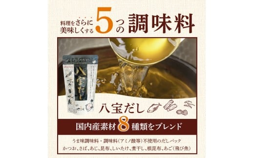 食卓ギフトセット _ 調味料 5種 食卓 ギフトセット エッ何このうまさ 顆粒タイプ 八宝だし ナチュラルクック おふくろの卵焼き専用だし これ一本 だし 和風だし 万能だし 減塩 減糖 セット 詰め合わせ 料理 煮物 お取り寄せ 福岡県 久留米市 送料無料 _Cd033