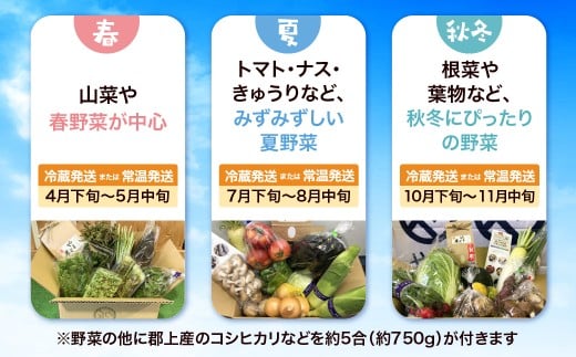 - 【R-9】[定期便]郡上の旬野菜とお米(年3回) 食品 野菜 セット 詰め合わせ 25000円