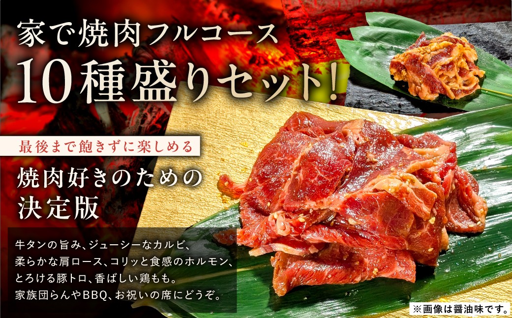 【味が選べる】焼肉セット10種【 味付け 醤油 味噌 豆板醤 簡単 BBQ バーベキュー 牛タン 牛カルビ 牛ウデ 牛肩ロース 牛さがり 豚トロ ハンバーグ ホルモン 鶏もも 豚カルビ 小分け 冷凍保存 】