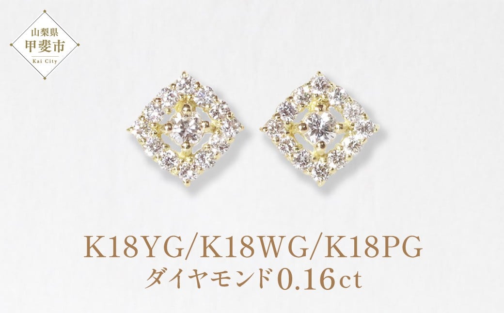 K18 ひし形 ダイヤモンドピアス 0.16ct BQ-99
