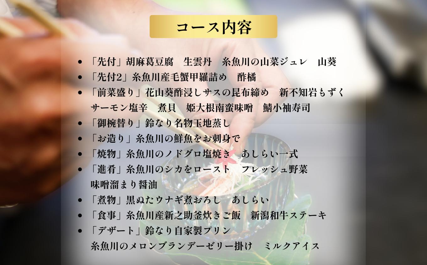 - 【四谷三丁目 日本料理】鈴なり 7年連続一つ星の名店「糸魚川旬の特別コース」食事券2名様分【 お食事券 食事 ふるさと納税 食事券 東京都 ふるさと 東京 割烹 コース料理 ふるさとチョイス 】