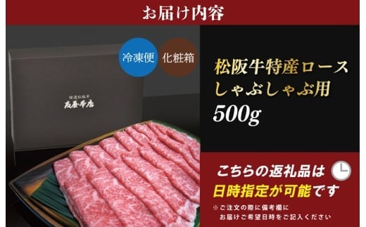 [年内配送12/22まで] 特産松阪牛 ロース しゃぶしゃぶ 500g 友屋本店 極上の柔らかさ 化粧箱入り 柔らかい 霜降り ブランド牛 国産 冷凍 焼肉 焼きしゃぶ 焼きすき 松坂牛 松阪肉 和牛 牛肉 三重県 A4 A5 特産 NT5