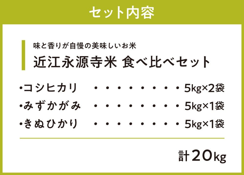 - 近江永源寺米コシヒカリ みずかがみ キヌヒカリ食べ比べ 20kg 株式会社カネキチ 滋賀県 東近江市 F-F05 米 近江米 3種