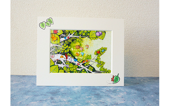 「森の中にひっそり」ペーパースタンド&「春と遊ぼう」タンブラーセット / さなの森 イラスト サイン入 東京都 No.089