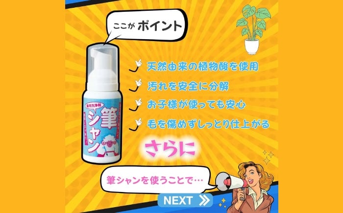 - 筆用洗浄剤 筆シャン (90mL×2本) 毛筆 書道筆 筆 ふで 洗剤 シャンプー 石鹸 せっけん 筆洗い 筆洗 ふであらい 書道 習字 三次市 / 株式会社リピカ [APDB002]