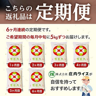 1296T 【定期便】庄内産雪若丸5kg×6ヶ月連続