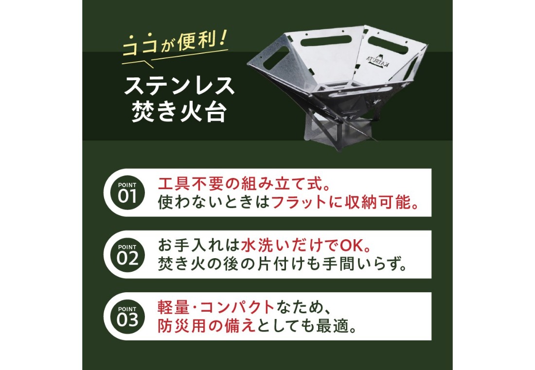 - ステンレス焚き火台 六角 ソロキャンプ用 アウトドア ソロキャンプ キャンプ用品 焚火台 ステンレス製 山梨 富士吉田