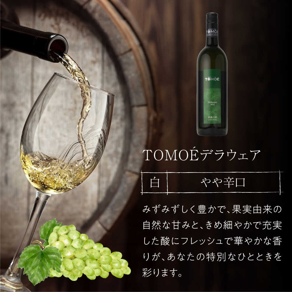 - 【ふるさと納税】【年内発送】 TOMOEデラウェア 【お歳暮ギフト対象】【スピード発送 / 選べる容量】ワイン 白ワイン やや辛口 750ml ワイン 受賞 ギフト 飲み比べ 選べる 贈答 産地直送 お取り寄せ 広島 酒 辛口 国産 三次市 / 広島三次ワイナリー[APAZ001]