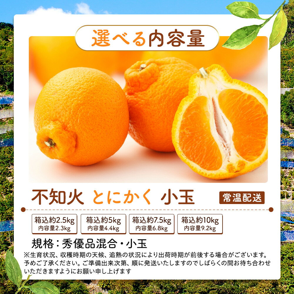 【ふるさと納税】【選べる容量】不知火 とにかく 小玉 箱込 2.5kg(内容量2.3kg) ~ 10kg (内容量約 9.2kg) 秀優品混合 和歌山県産 産地直送 【みかんの会】 | 不知火 柑橘 小粒 秀品 優品 人気 おすすめ フルーツ 甘味 和歌山県産 家庭用 産地直送 ふるさと納税