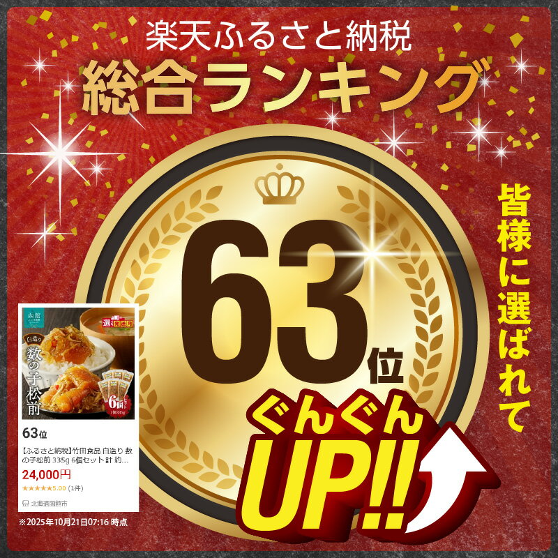 - 【ふるさと納税】竹田食品 白造り 数の子松前 335g 6個セット 計 約2kg いか 昆布 醤油漬 松前漬 大ぶり 数の子 白醤油たれ 海鮮 海産物 海の幸 旨み 小分け セット 加工品 魚卵 おかず 惣菜 北海道 函館 送料無料 お取り寄せグルメ