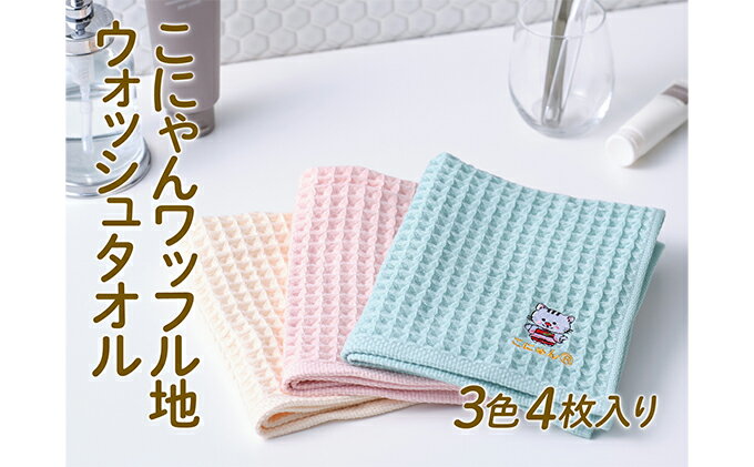 【ふるさと納税】こにゃんワッフル地ウォッシュタオル3色4枚入り フェイスタオル