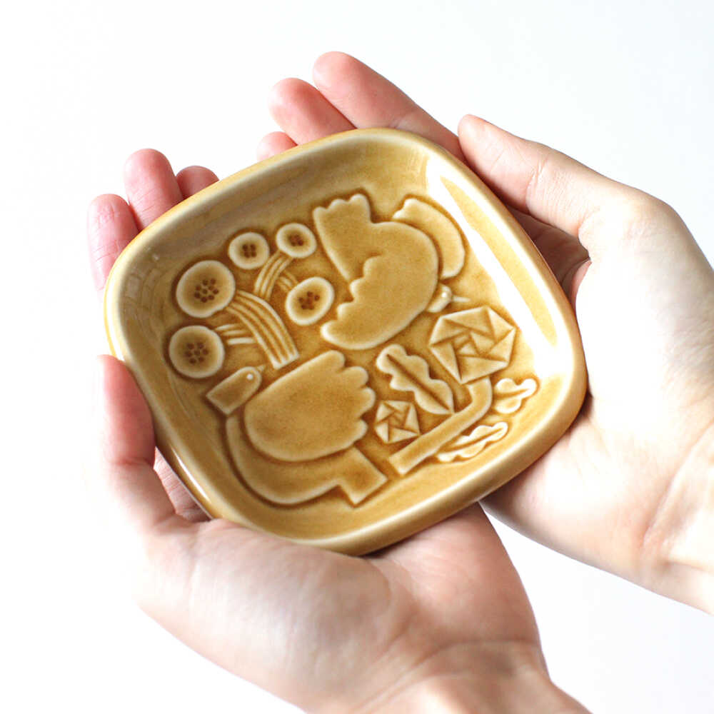 - 【ふるさと納税】【美濃焼】 スクエアプレート ペアセット <BIRDS' WORDS> SQUARE PLATE 105 イエローオーカー × トープグレー 瑞浪市 / FLYWAY[AZCC001]