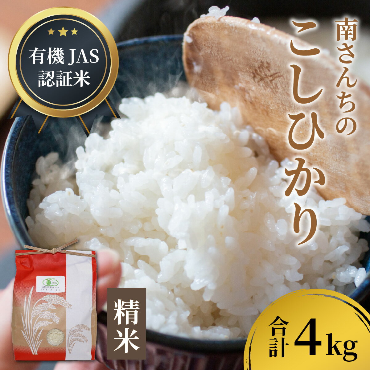 - 【ふるさと納税】【令和7年産】【有機JAS認証米】南さんちのこしひかり 4kg(2kg×2袋)<精米> 出荷直前に精米 | 人気の米 ごはん お米 コシヒカリ 精米 白米 有機米 4kg 2kg 小分け お試し 送料無料 こだわり 国産 福井産 勝山市