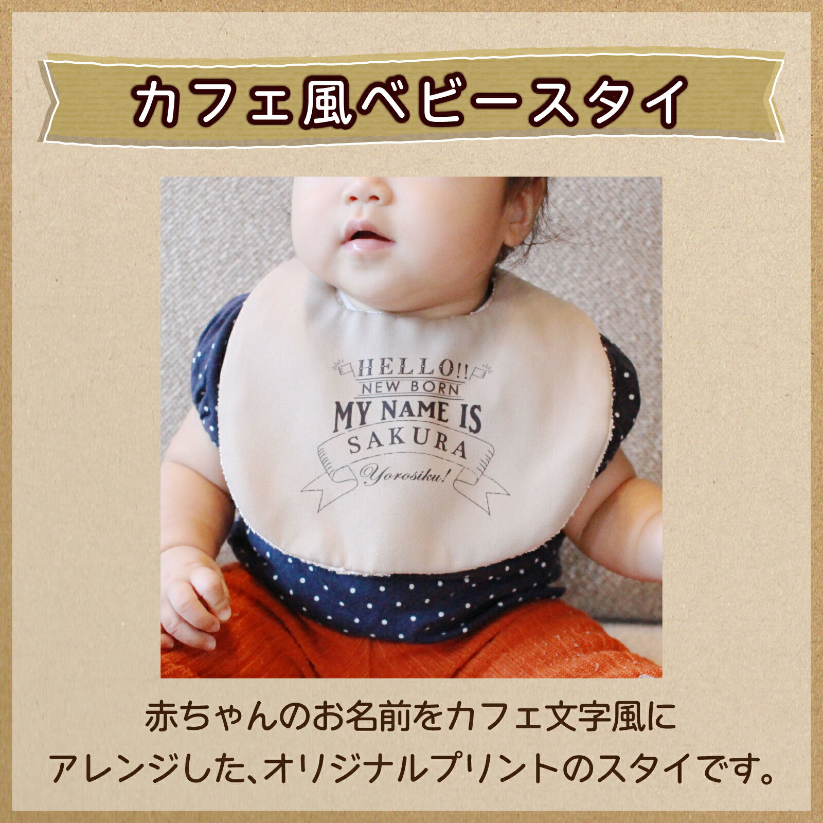 【ふるさと納税】【カラーが選べる】【お名前入り】カフェ風ベビースタイ|よだれかけ 赤ちゃん こども 育児 育児グッズ 子供 ベビー用品 赤ちゃん用品 子供用品 出産祝い ベビーギフト|MONO工房