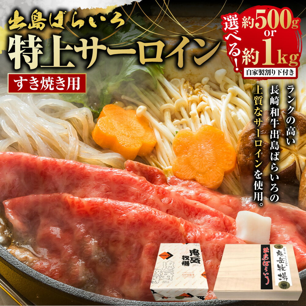 - 【ふるさと納税】出島ばらいろ特上サーロインすき焼き用 (自家製割り下付き) 選べる内容量 ( 約500g / 約1kg ) | 長崎和牛 牛肉 お肉 肉 冷凍 長崎県産 国産 長崎県 長崎市 送料無料