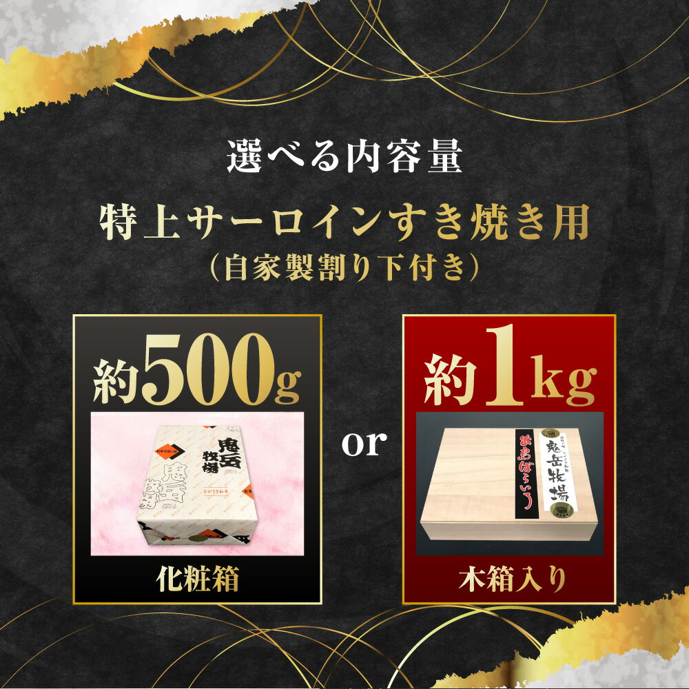 【ふるさと納税】出島ばらいろ特上サーロインすき焼き用 (自家製割り下付き) 選べる内容量 ( 約500g / 約1kg ) | 長崎和牛 牛肉 お肉 肉 冷凍 長崎県産 国産 長崎県 長崎市 送料無料