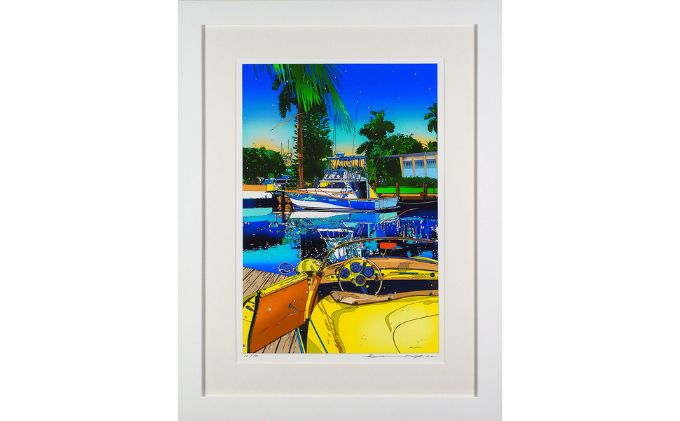 版画 鈴木英人 「あの白い夏」 シリアルナンバー入り フレーム付き 直筆サイン入り インテリア アート 絵画 絵 イラスト 風景 バハマ アイランド 【 額縁 】
