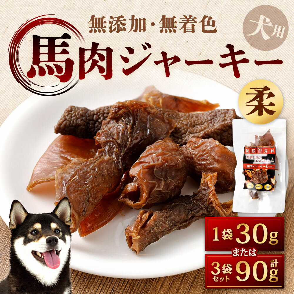 【ふるさと納税】犬用 馬肉ジャーキー(柔) 1袋30g入り 選べる 1袋 / 3袋 馬肉 ジャーキー 犬用おやつ 無添加 高たんぱく 無着色 馬 低脂肪 ヘルシー 馬ホルモン肉 ドッグ ワンちゃん シニア犬 成犬 鉄分 ミネラル 柔らかめ しつけ ご褒美 ペット