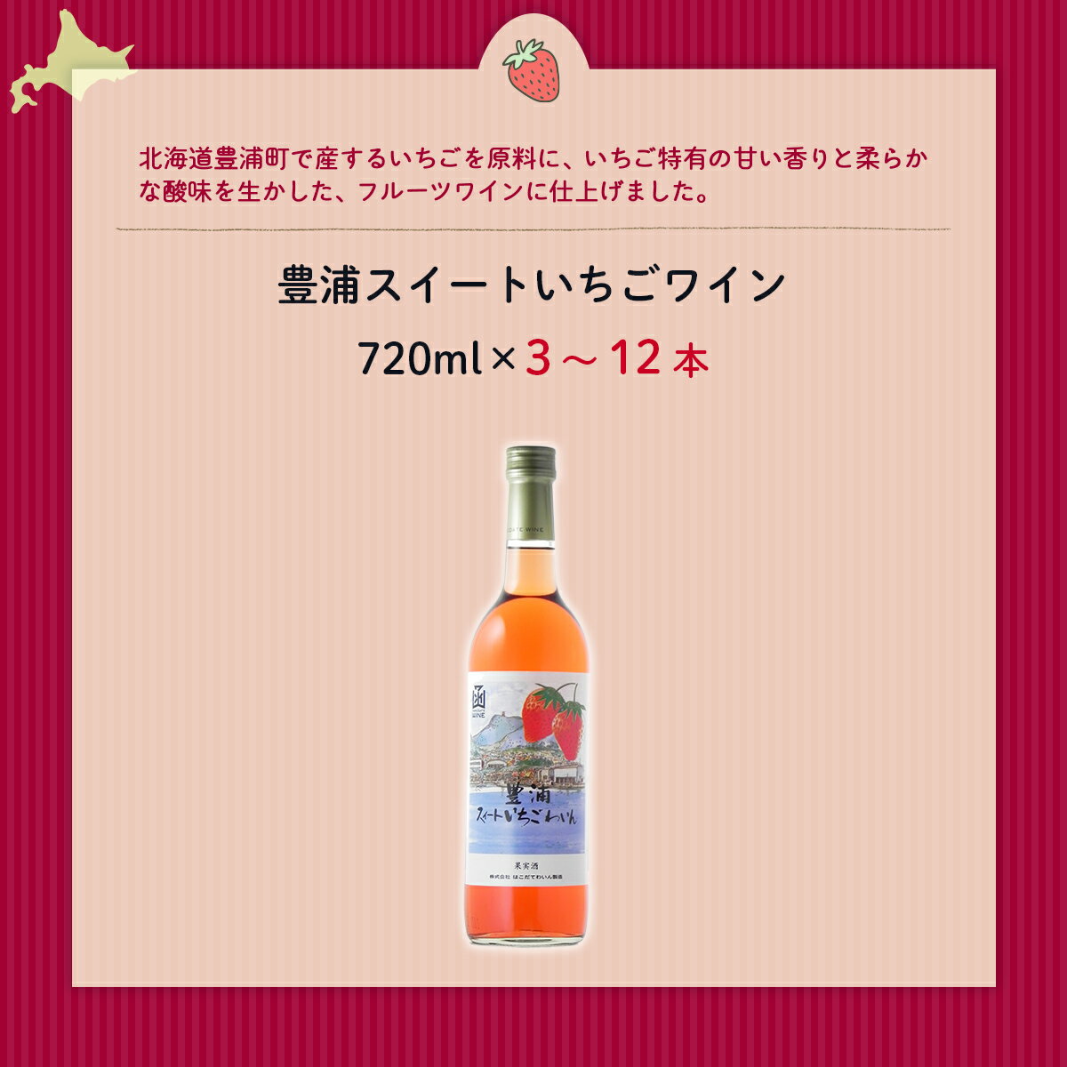 - 【ふるさと納税】豊浦スイートいちごワイン 720ml 選べる本数(3本/6本/12本)【ふるさと納税 人気 おすすめ ランキング ワイン わいん フルーツワイン いちごワイン セット お酒 アルコール 北海道 七飯町 送料無料】
