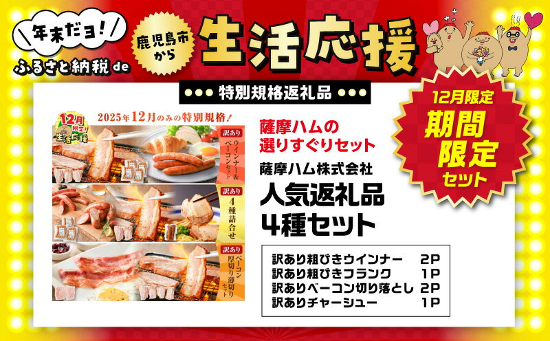 【ふるさと納税】【期間限定 生活応援】2025年12月のみの特別規格<選べる>人気 訳あり ウインナー ベーコン セット 厚切り 薄切り 4種類 詰合せ 肉 豚肉 粗びき フランクフルト ソーセージ 規格外 惣菜 総菜 冷凍 薩摩ハム 鹿児島 おすすめ ランキング プレゼント ギフト