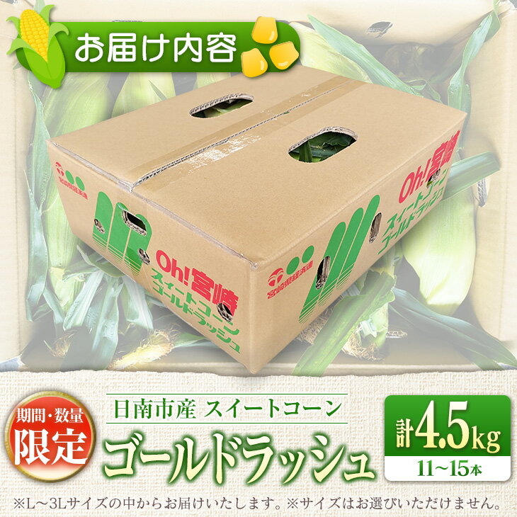 【ふるさと納税】先行予約 スイートコーン ゴールドラッシュ 計4.5kg 数量限定 期間限定 野菜 とうもろこし トウモロコシ とうきび コーン 令和8年発送 国産 朝どれ 産地直送 新鮮 バーベキュー BBQ 焼肉 食品 デザート おやつ おすそ分け おすすめ 宮崎県 日南市 送料無料