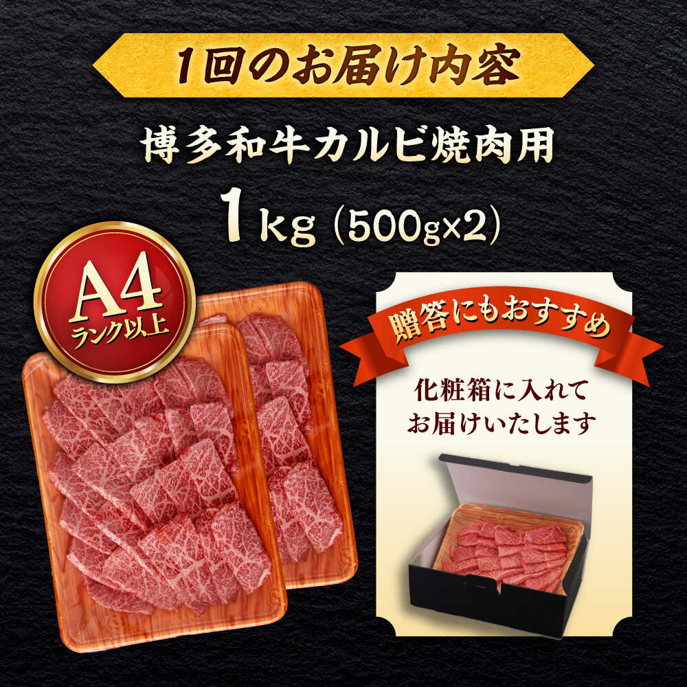 【ふるさと納税】【全6回定期便】【A4/A5等級】博多和牛 カルビ 焼肉用 1kg <ヒサダヤフーズ>那珂川市 | 牛肉 焼き肉[GFY030] 190000 19万円 以下