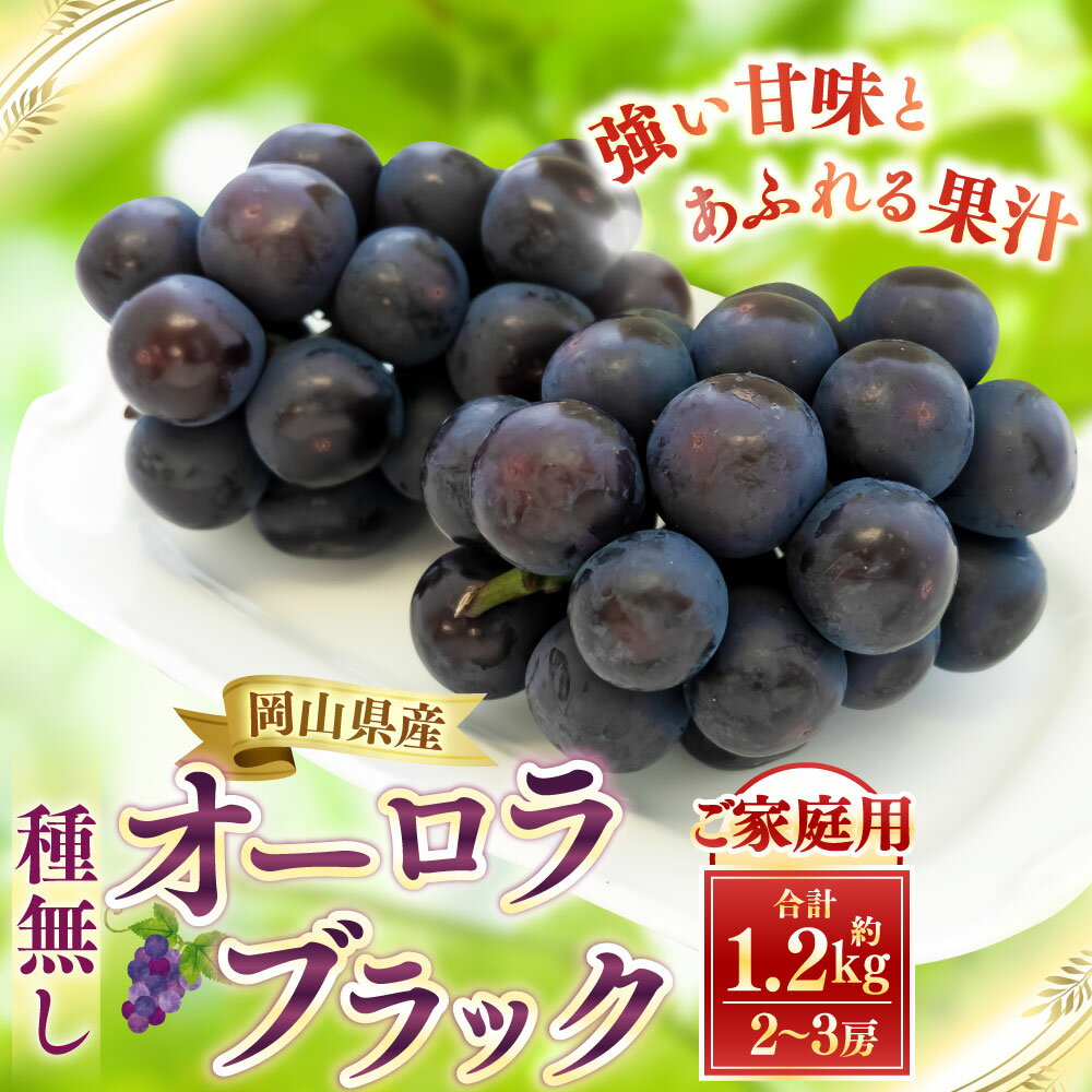 【ふるさと納税】 【 ご 家庭 用 】 オーロラブラック 2~3房 1.2kg 【 2026年9月上旬から10月上旬頃発送予定 】 果物 くだもの フルーツ ぶどう ブドウ 葡萄 種無し 大粒 甘味が強い 甘い 果汁 食べ応え 岡山県 美咲町 送料無料