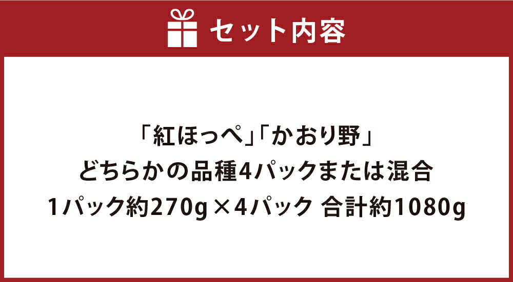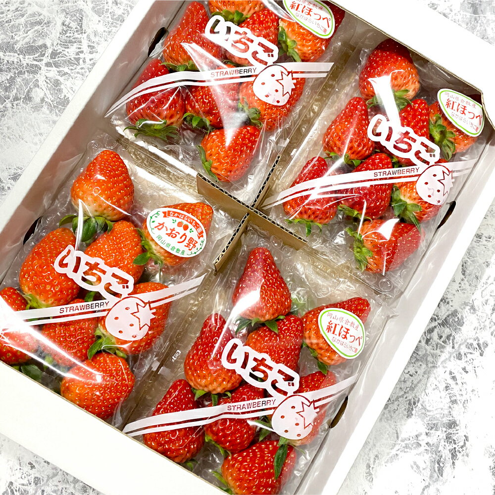 - 【ふるさと納税】いちご おまかせ 4パック 箱詰め 約1080g 倉敷産 紅ほっぺ かおり野 岡山県産 果物 フルーツ 甘み 酸味 酸味少なめ さわやか おやつ 岡山の苺 【2025年12月上旬~2026年3月下旬迄順次発送予定】