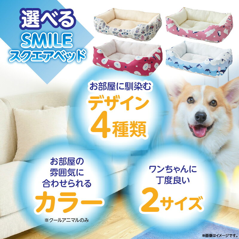 - 【ふるさと納税】【選べる柄・色・サイズ】SMILE スクエアベッド Sサイズ Mサイズ わんちゃん ワンちゃん 奈良県 生駒市 送料無料