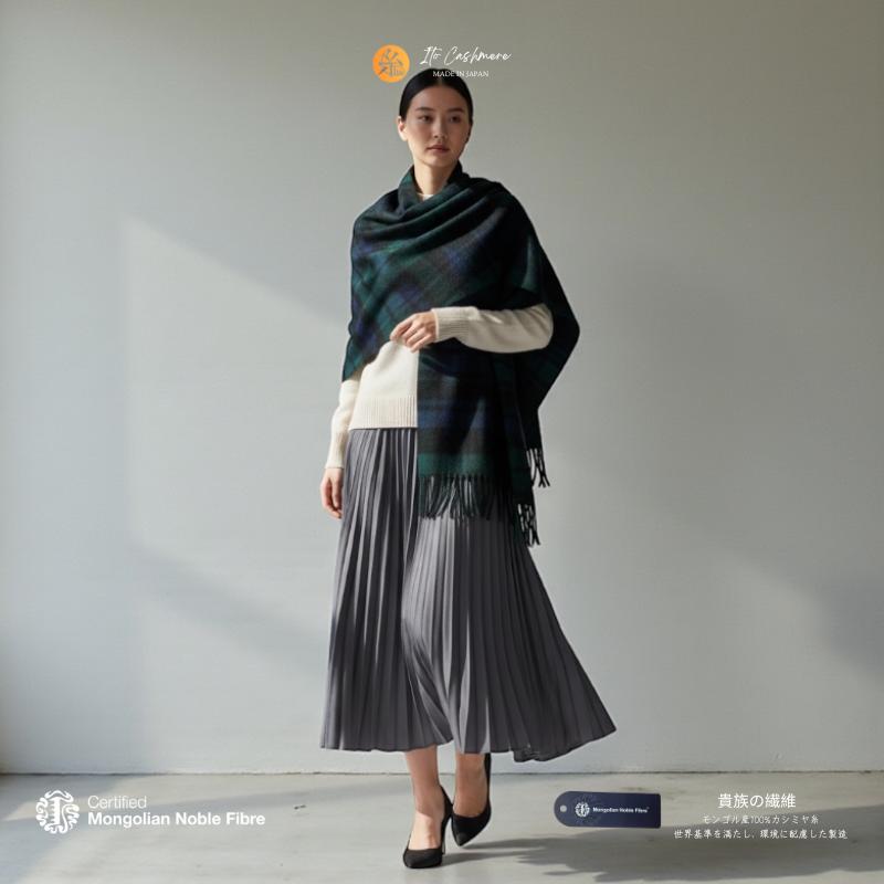【ふるさと納税】『Noble Fibre』 100% カシミヤ 大判 ストール フリンジ 付き 1枚 選べる カラー 2色 ブラックウオッチ チェック 大判チェック カシミヤ糸 ファッション おしゃれ 肩掛け 衣類 季節の変わり目 お取り寄せ 大阪府 泉佐野市 送料無料