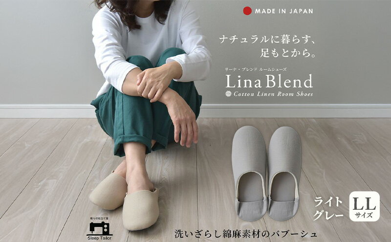 【ふるさと納税】洗いざらし綿麻素材のバブーシュ LLサイズ リネン コットン リーナブレンド ライトグレー 日本製 スリッパ 綿麻素材のルームシューズ メンズ レディース キッズ 静岡 浜松市