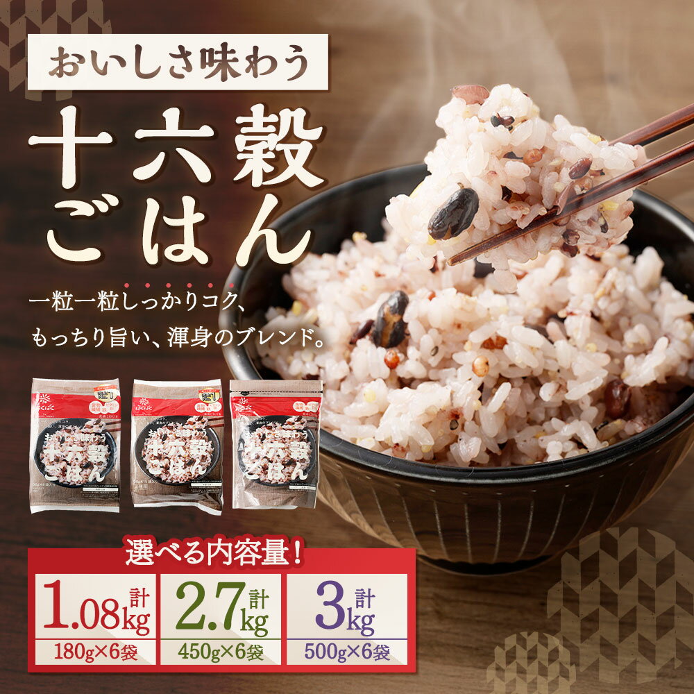 - 【ふるさと納税】<選べる内容量>おいしさ味わう十六穀ごはん 計1.08kg ((30g×6)×6袋) / お徳用 計2.7kg((30g×15)×6袋) / 計3 kg(500g×6袋) 雑穀米 お米 黒米 十六種類 穀物入り ごはん ご飯 国産 山梨県 中央市 送料無料