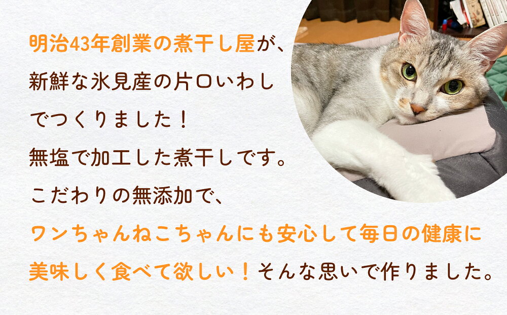 【ふるさと納税】無塩加工煮干し 煮干し屋のわんにゃんおやつ 70g×1袋-10袋 無塩 煮干し 鰯 ペットフード 人間も可 犬 猫 富山県 氷見市