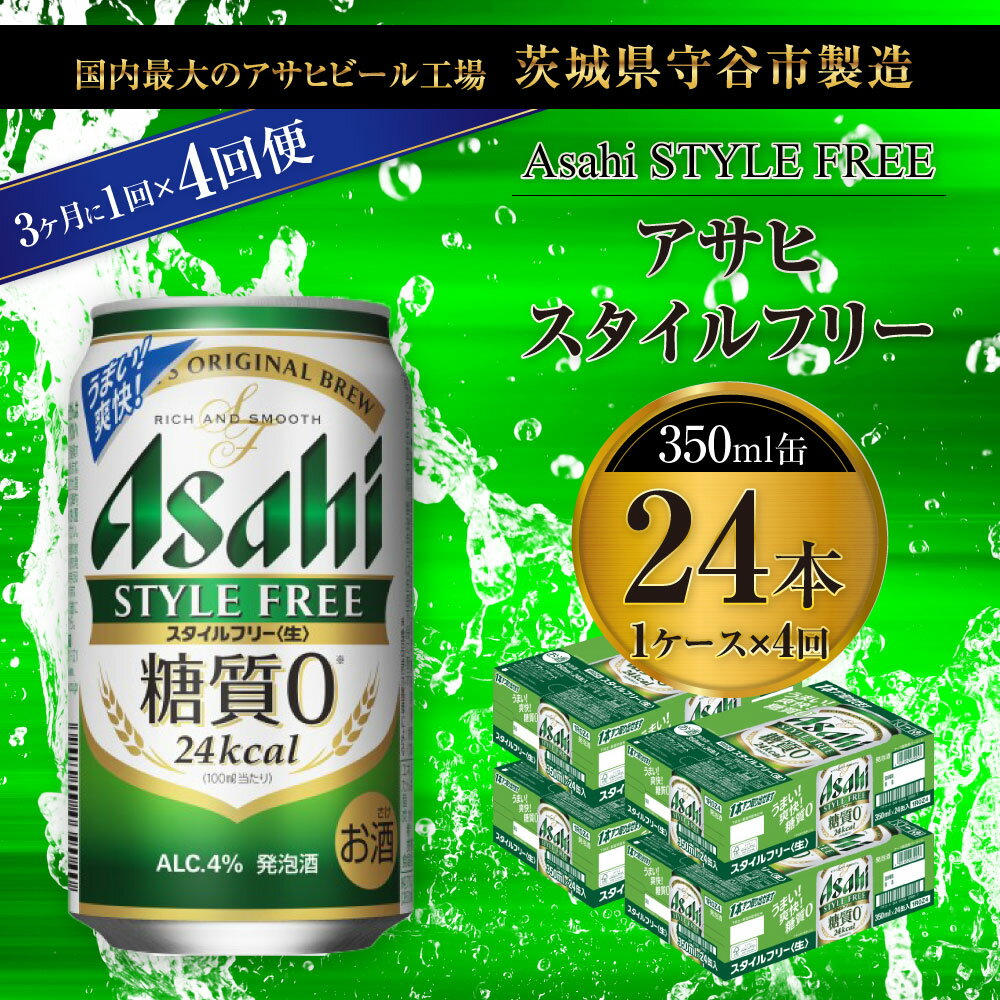 【ふるさと納税】【定期便】ビール アサヒ スタイルフリー<生> 350ml 24本 1ケース 3ヶ月に1回×4回便 【お酒 発泡酒 缶ビール アルコール zero stylefree 糖質制限 糖質ゼロ ギフト 内祝い お歳暮 茨城県守谷市】