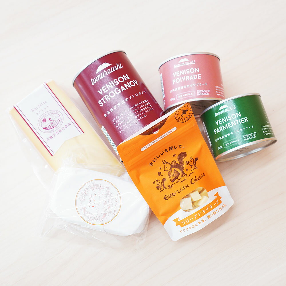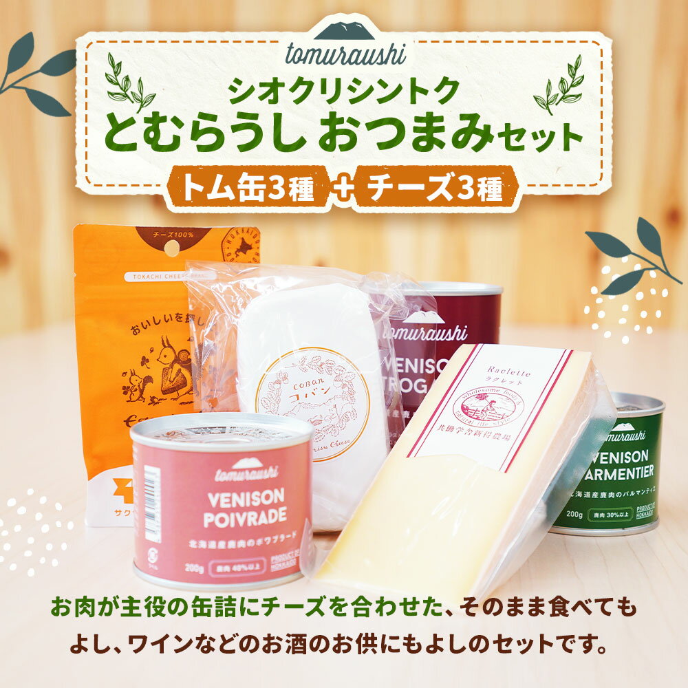 - 【ふるさと納税】【シオクリシントク】とむらうし おつまみセット トム缶3種+チーズ3種セット 6種 ポワブラード パルマンティエ ストロガノフ フリーズドライチーズ コバン ラクレット 計1.125kg 鹿肉 エゾシカ お肉 お酒のお供 詰め合わせ 冷蔵 北海道産 送料無料【N-3201】